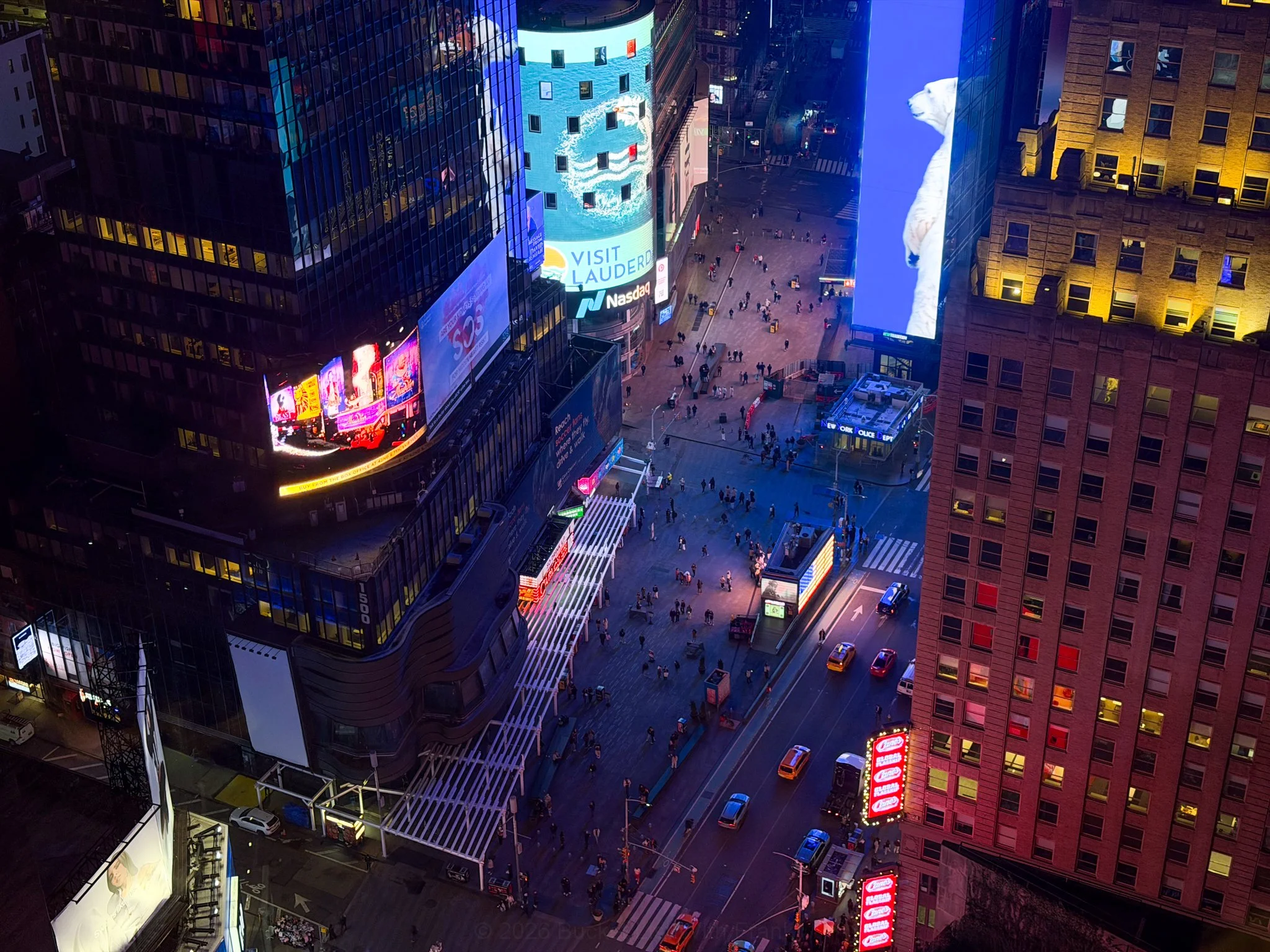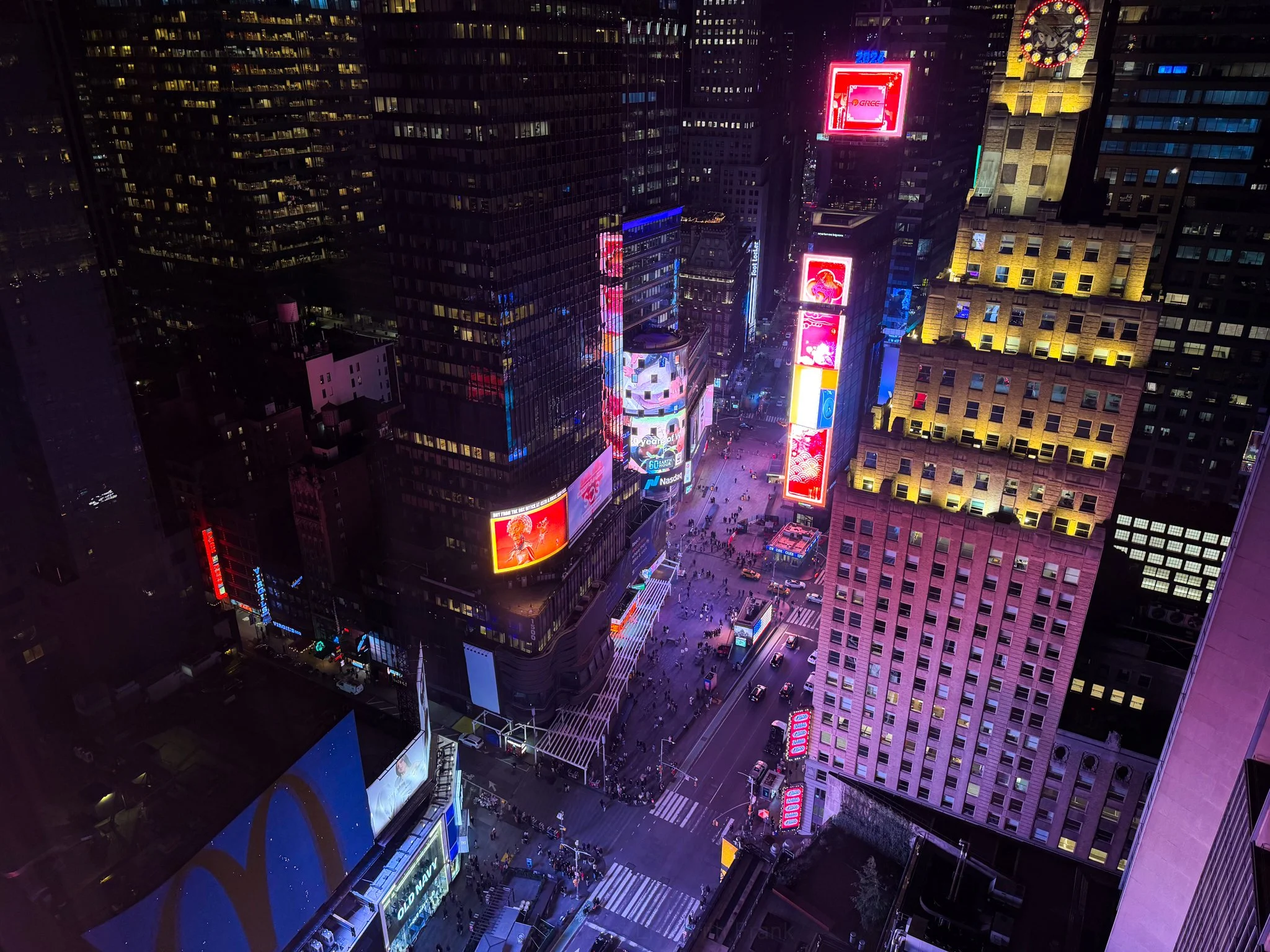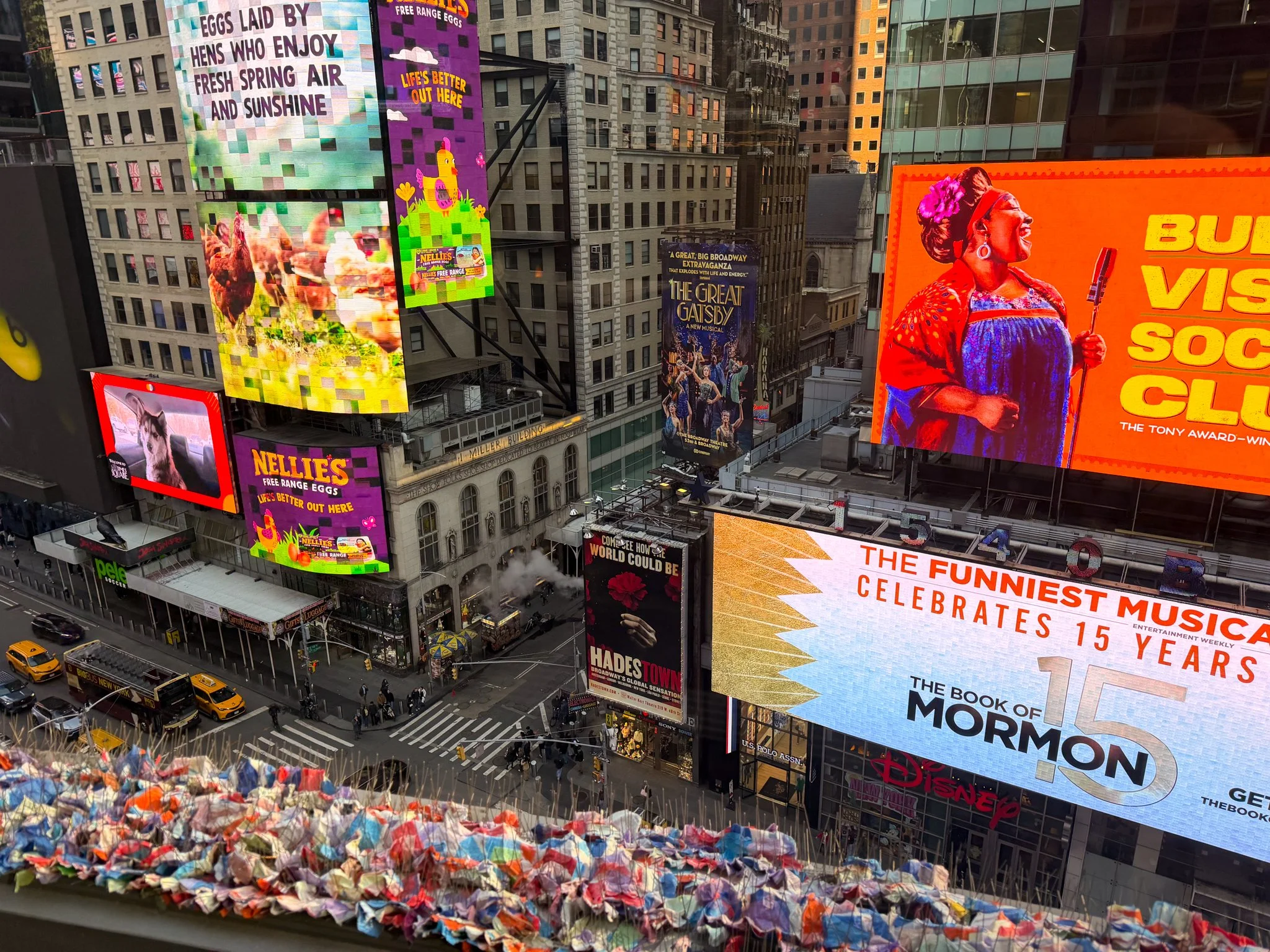 Watching Times Square from above on a high floor changes your perspective completely.
