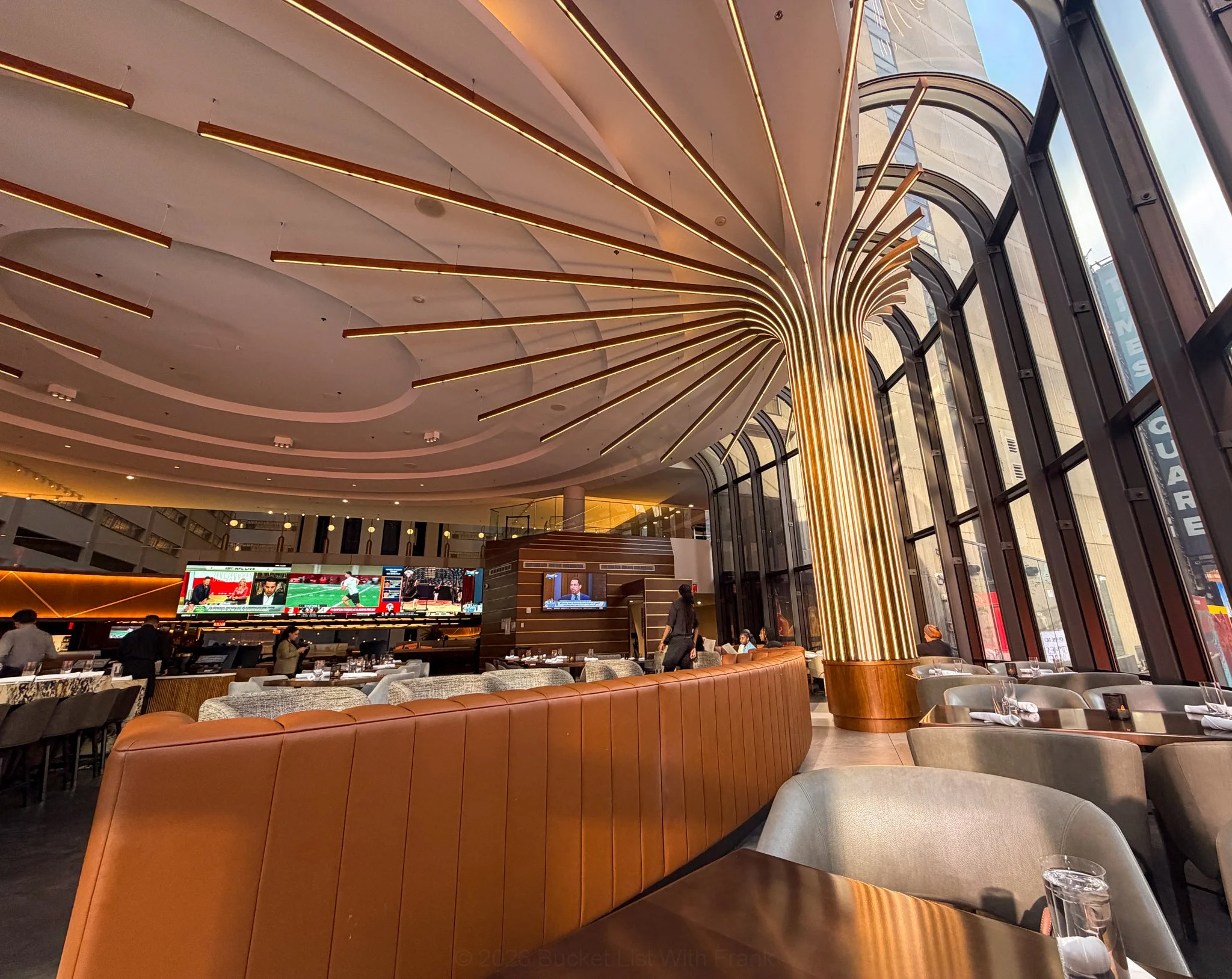 This space is open, elevated, and designed to overlook Times Square through massive windows. It is ideal for drinks, dinner, or even just sitting back and taking in the view. At night, this becomes one of the best indoor vantage points in the city without having to deal with the crowds below.