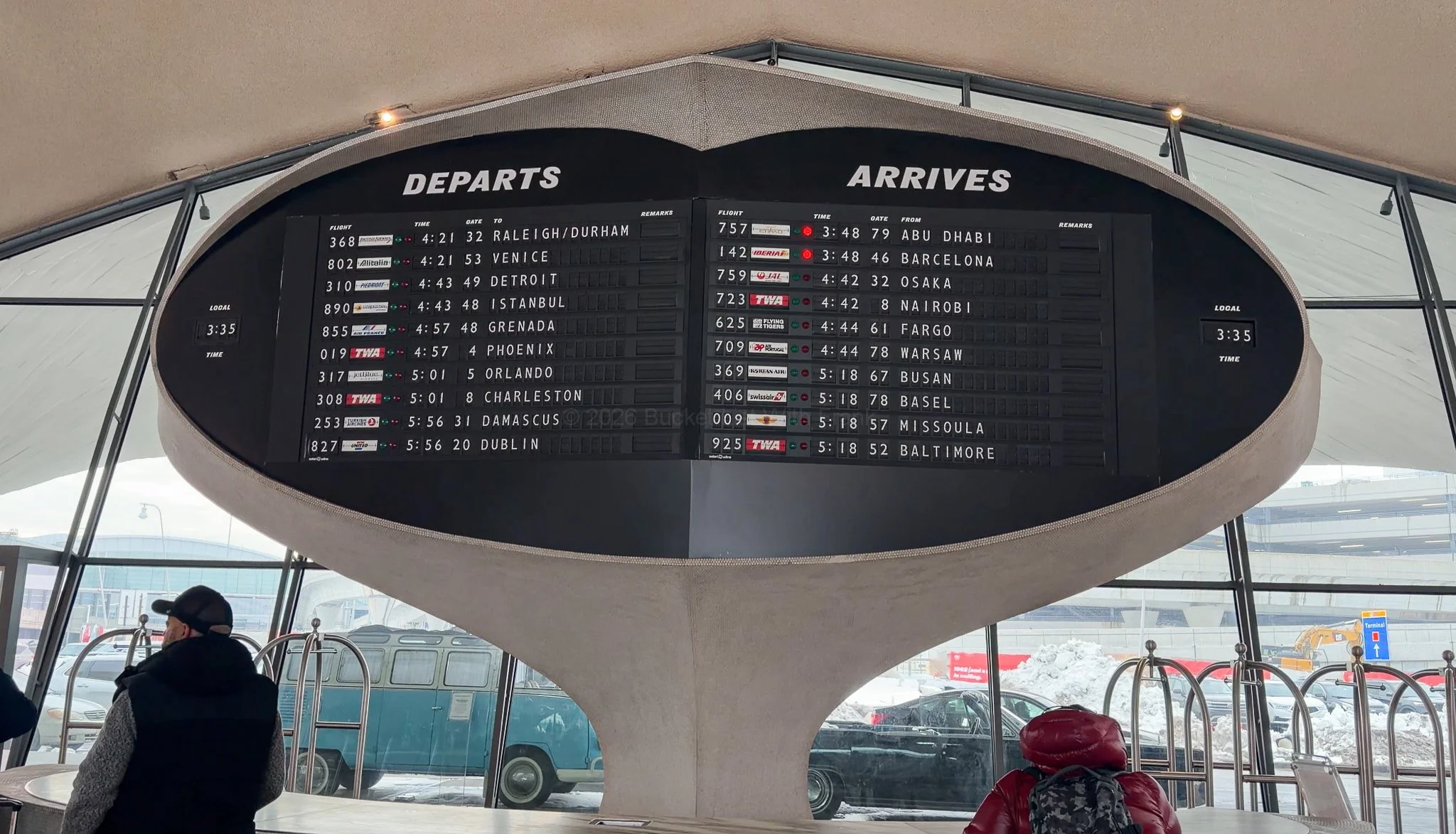 Originally designed by Eero Saarinen, the building is defined by sweeping concrete curves, dramatic wing-shaped rooflines, and expansive floor-to-ceiling glass rooms overlooking the runways of John F. Kennedy International Airport. The space feels fluid and sculptural rather than rigid. There are no harsh angles or traditional corridors. Instead, everything bends and flows, creating a sense of motion that mirrors the spirit of flight.