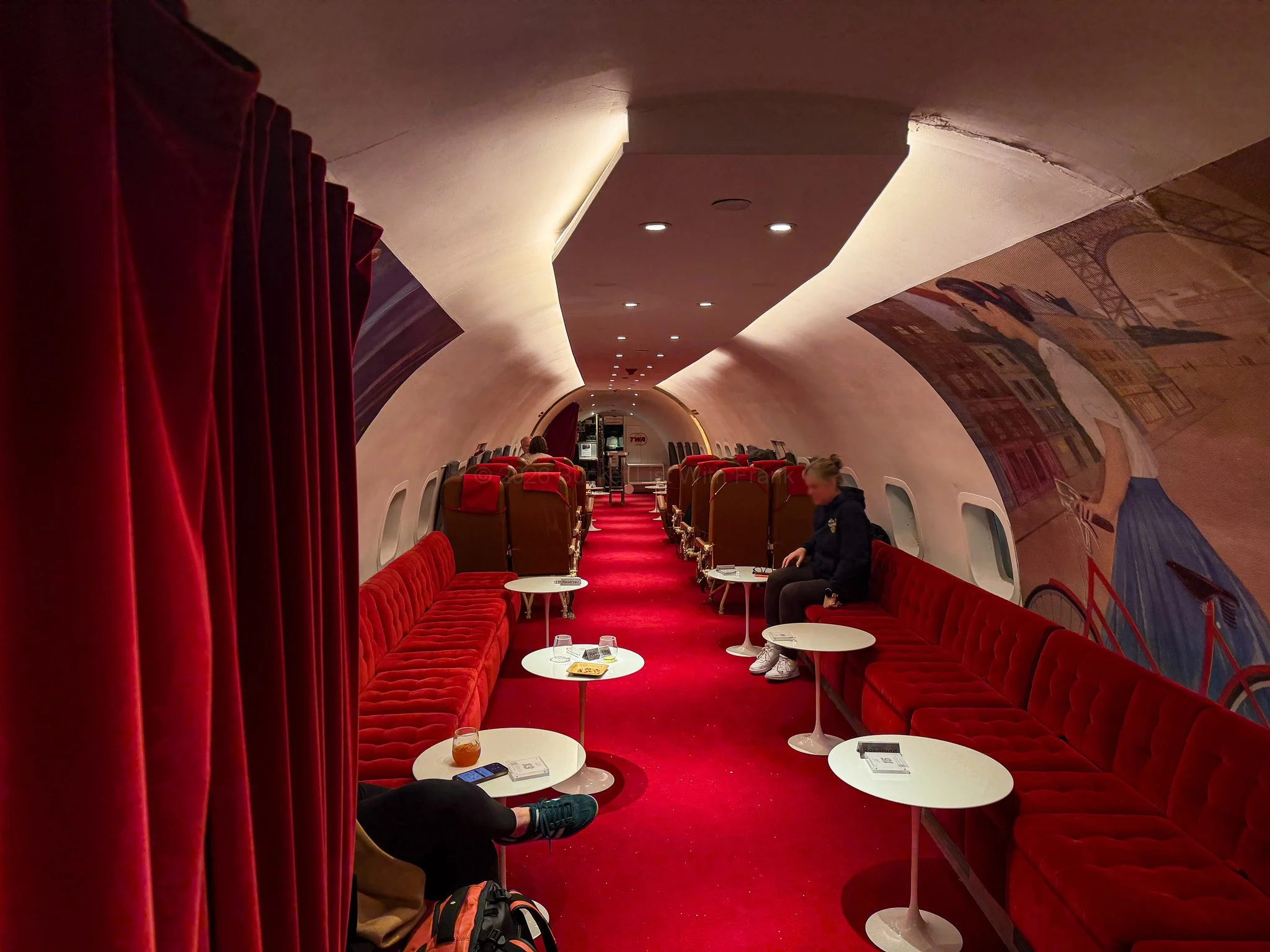 Then there is the Connie Cocktail Lounge. Housed inside a restored 1958 Lockheed Constellation, the aircraft sits just outside the terminal and is accessed via traditional mobile air stairs. Having a drink inside a historic airliner that once crossed oceans well before I was born is one of the most distinctive bar experiences I have had.