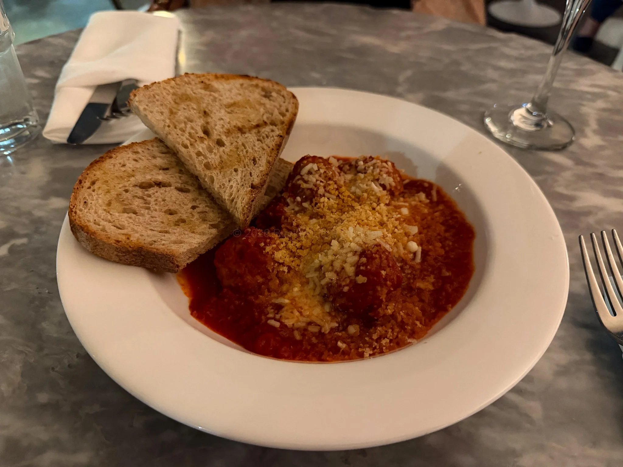 Meatballs served at Paris Café inside TWA Hotel at JFK Airport.