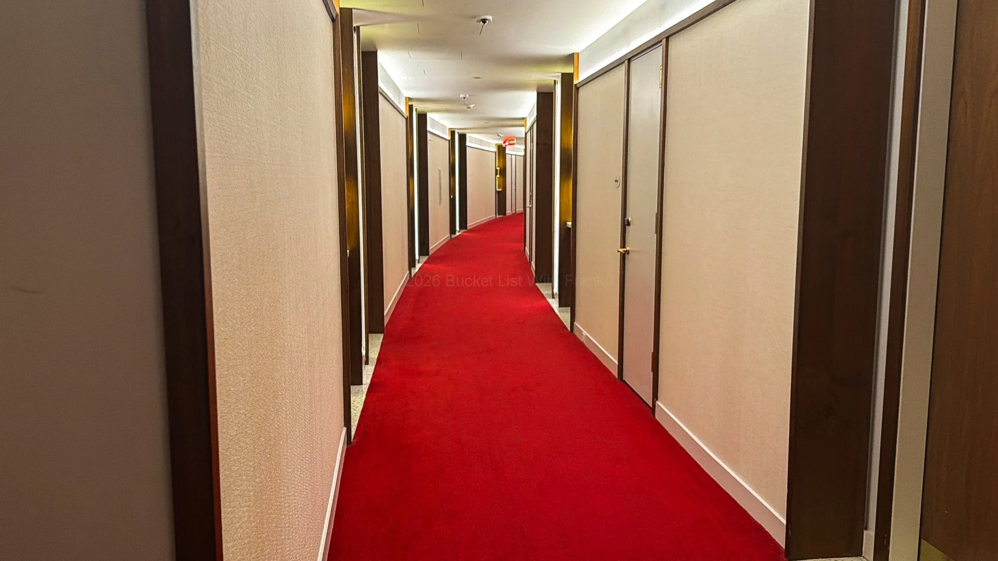 In addition, portions of the iconic red carpet throughout certain hallways showed normal wear and tear. I noticed minor stains and small tears in some areas. Considering the property opened in 2019 and receives significant foot traffic from both overnight guests and daily visitors, this level of wear is not entirely surprising.