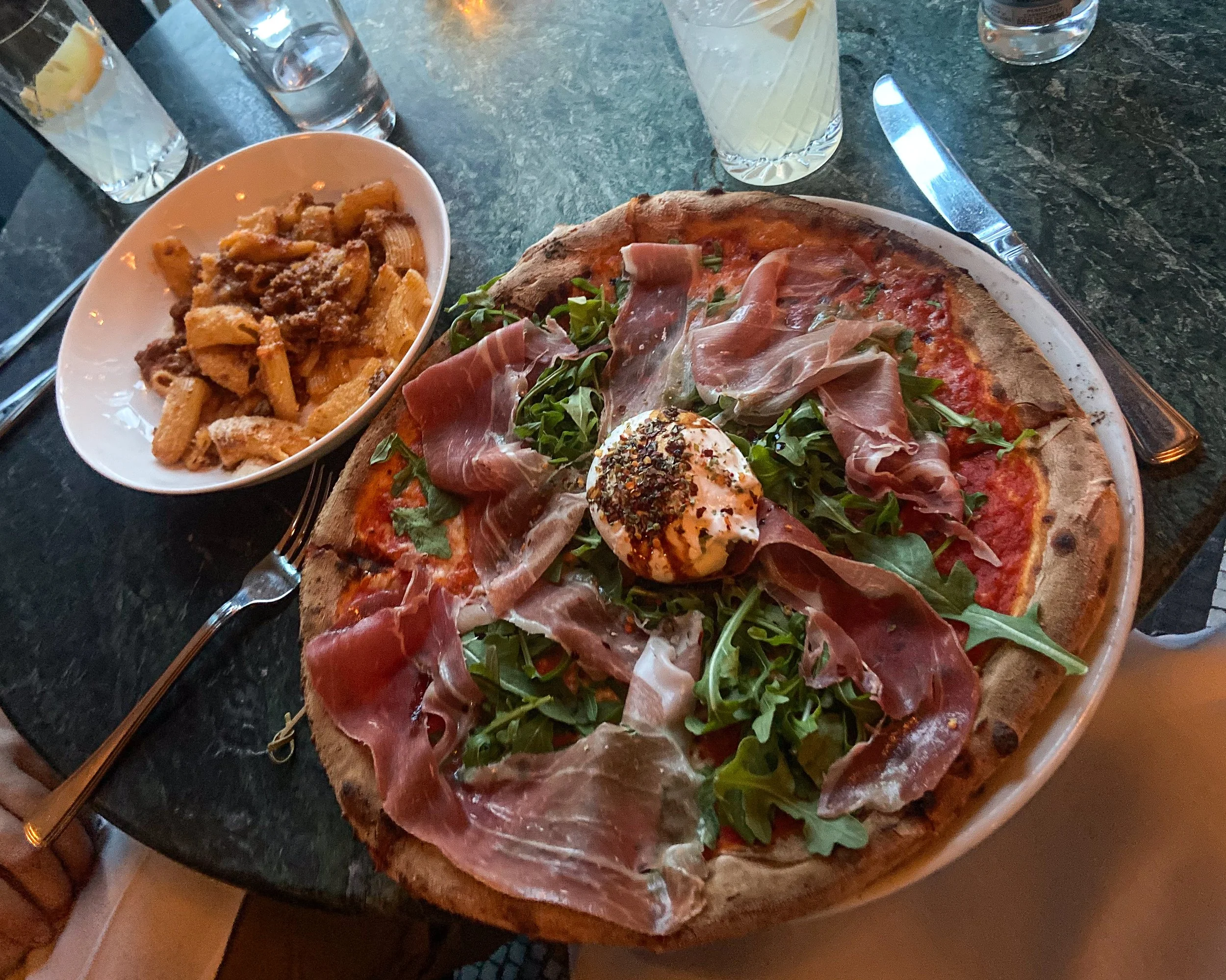 Cecconi’s sits right along the water in DUMBO with a direct view of the Lower Manhattan skyline. Italian food, open air energy, and boats passing along the East River. It feels cinematic without trying too hard.