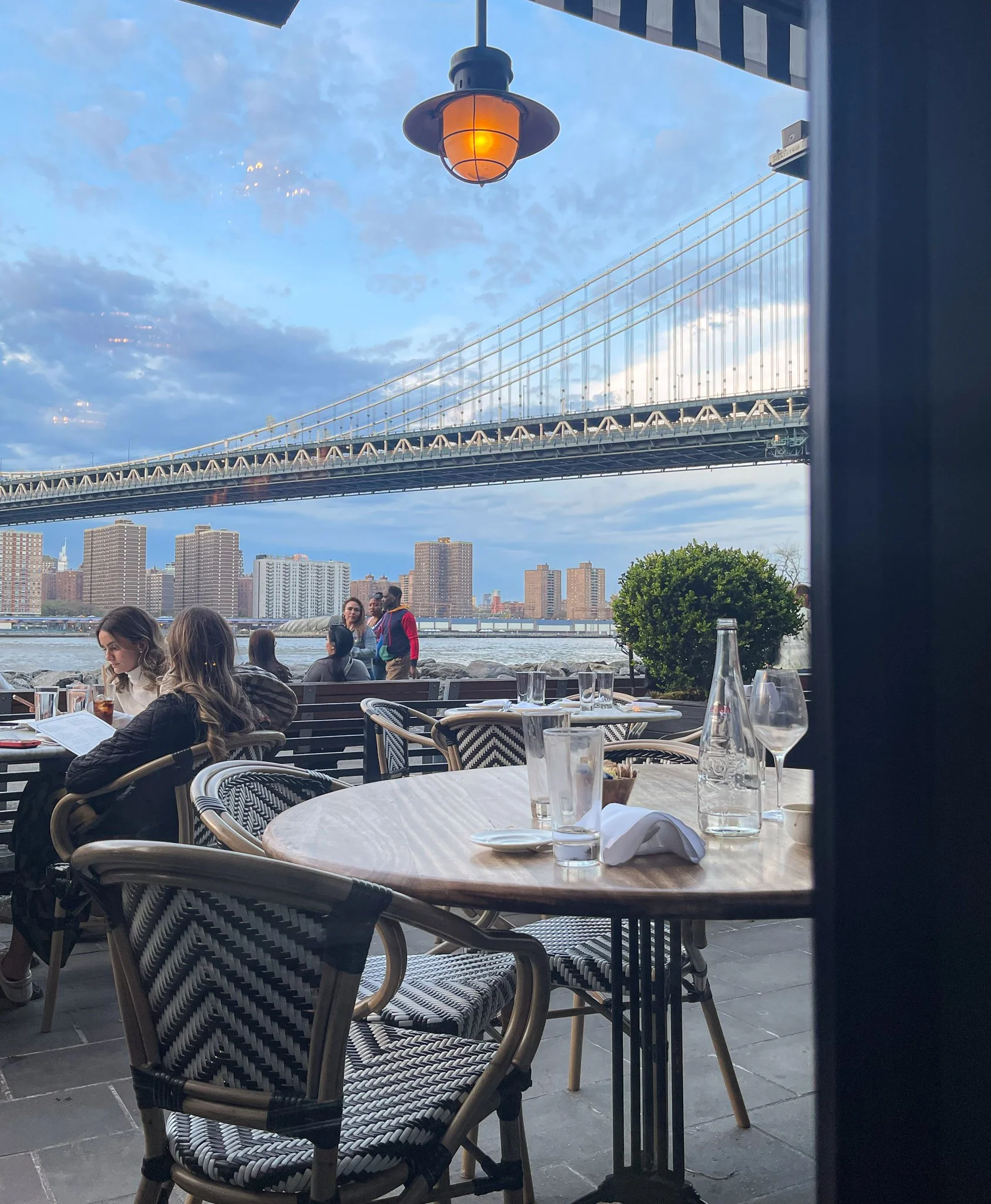 Dining between the Manhattan Bridge and the Brooklyn Bridge is one of those classic New York moments that never gets old.